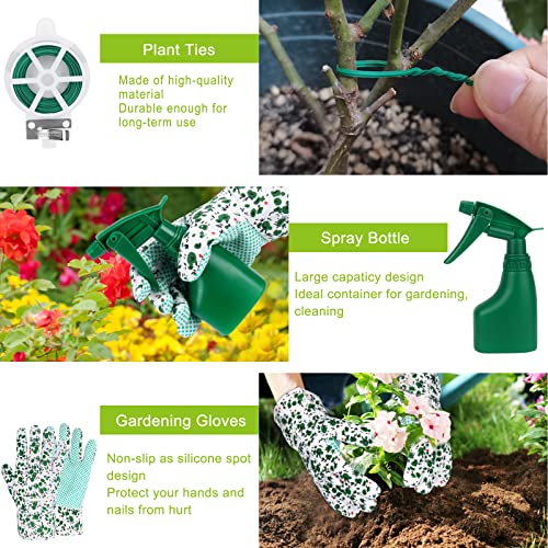 【Everything Including】Green floral printed garden tool set for women men contains 26 useful gardening kit: 1 pair garden gloves, 1 spray bottle, 1 garden twist ties, 1 air dust collector, 8 pcs butterfly stakes, 1 shovels for gardening, 1 garden tool organizer, 1 exquisite box, 3 pcs aluminum garden tools and 9 pcs garden supplies. They will meet your cultivator garden tool needs such as digging, watering, weeding, loosening soil, aerating and transplanting and other gardening work.