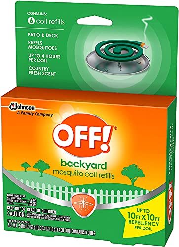 OFF! Mosquito Repellent Coil Refills provides up to four hours of protection from mosquitoes. Works in semi-confined areas such as porches, patios and other areas where there is minimal breeze. The coil works effectively even in areas as large as 10 ft x 10 ft (100 sq. ft), repelling bugs while leaving behind a Country Fresh scent. Help keep mosquitoes at bay, and keep living life your way.