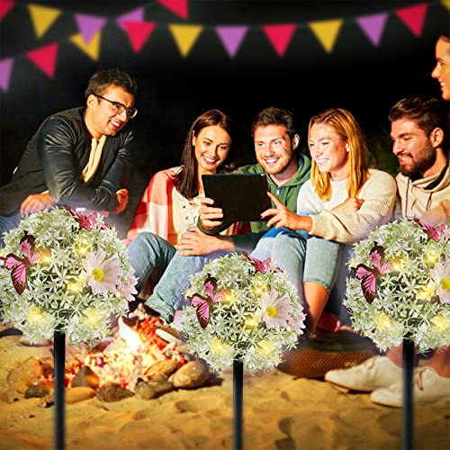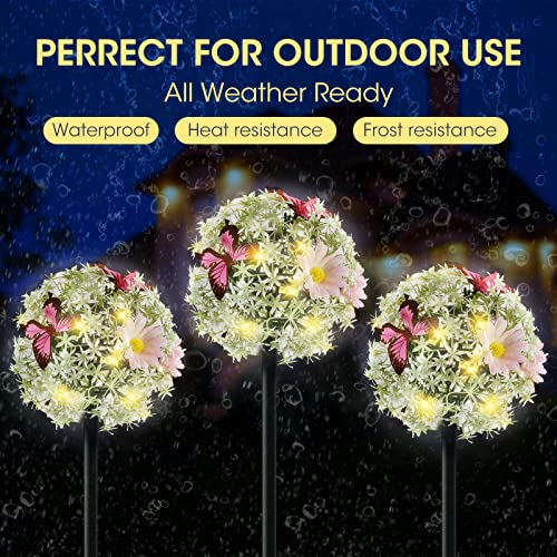 🌼【THE LATEST SOLAR FLOWER & BUTTERFLY LIGHTS】:Beautiful and gorgeous, 2 packs of solar outdoor flower lights look like flame flowers at night and butterflies fly around.Using the latest solar charging panel technology, no running electrical cords