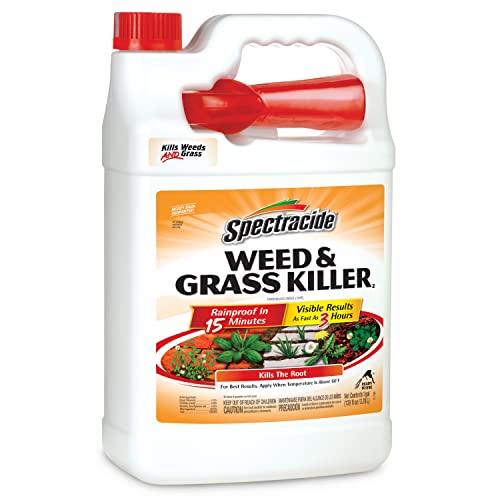 The power is in your hands to keep your landscape in line – unleash it with Spectracide lawn and garden products. Our easy-to-use, fast-acting insect, lawn disease and weed control solutions help you tame lawn and landscape invaders with incredible pest-punishing power. Take command with Spectracide brand. You hold the power.Spectracide Weed & Grass Killer2 is a non-selective weed and grass killer that kills weeds and grasses. It’s formulated for spot treatment of weeds and grasses on patios, walkways and driveways; around flowers, shrubs and trees; and along fences and foundations. This formula is rainproof in 15 minutes — rainfall or watering after 15 minutes won’t wash away effectiveness. Spectracide Weed & Grass Killer2 kills down to the root and delivers visible results as fast as 3 hours. Plant new flowers, trees and shrubs in the treated area after just 1 day. For best results, apply this ready-to-use spray during warm, sunny weather when the temperature is over 60 degrees. Completely cover the leaves of the target vegetation. Protect desirable plants with a piece of plastic or cardboard — if desirable plants are accidentally sprayed, wash with water immediately. Do not mow, cut or otherwise disturb treated vegetation for at least 7 days following application. Do not use on or around edible feed or food crops.